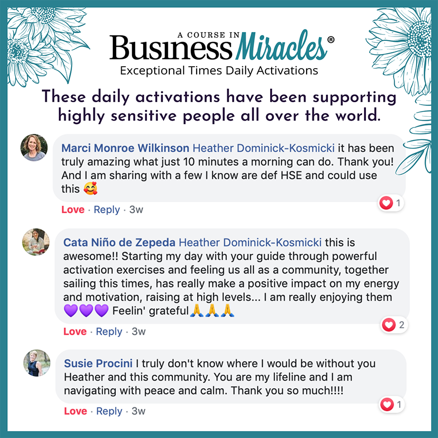 I heard from so many people how supportive and valuable the daily activations have been and of many Business Miracles occurring even in the midst of this crisis (which makes my heart so happy to serve in this way).