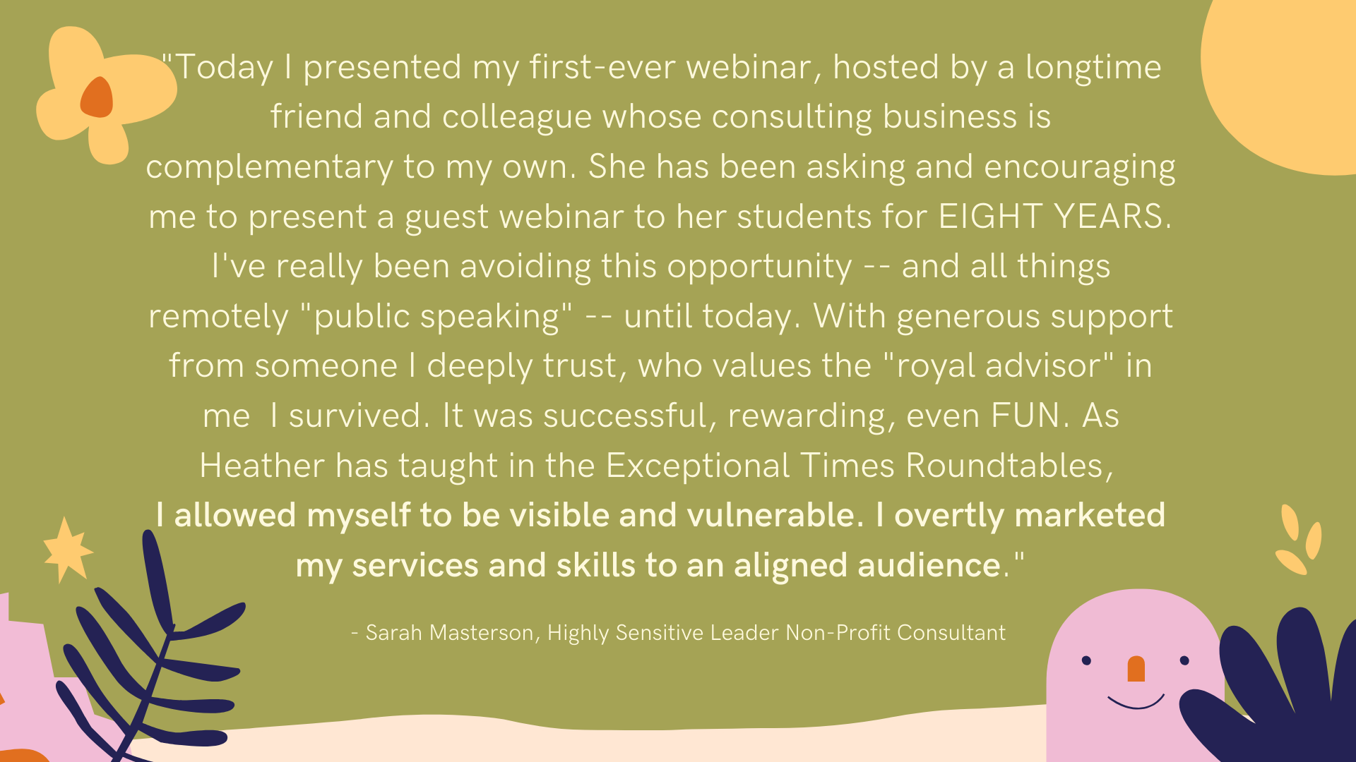 This nugget has grown into a treasure chest over these past months as I've gone deep while stepping up to serve the Highly Sensitive Leaders in my Business Miracles Community through these Exceptional Times. I've opened the door wide for each member to truly begin to claim and develop what leadership is meant to look like for each of them as a high-functioning highly sensitive through and beyond these times.