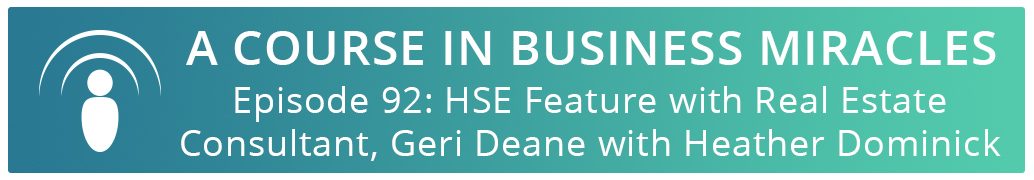 Sdfsdf, during these Exceptional Times I'm happy to share the inspiration of the latest A Course In Business Miracles Podcast with you, Episode 92: HSE Feature with Real Estate Consultant, Geri Deane.