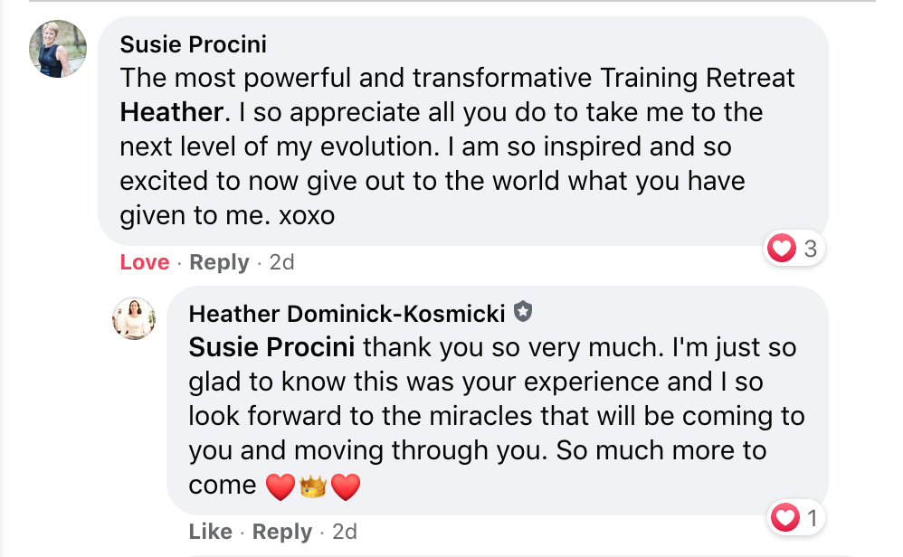 P.S. If you sense that you're meant to be a part of the next Business Miracles Retreat, then I invite you to click here and fill out the form to be connected with A Business Miracles Enrollment Coach who will help you find the Mentoring Program that is the best match for you.