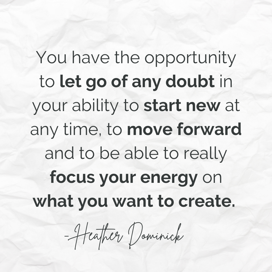 You have the opportunity to let go of any doubt in your ability to start new at any time, to move forward and to be able to really focus your energy on what it is that you want to create.